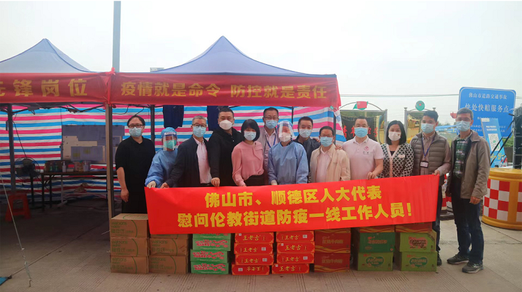 4月20日上午,部分人大代表到西二环高速出口及伦教街道永丰村围合点走访慰问奋战在疫情防控一线的工作者。