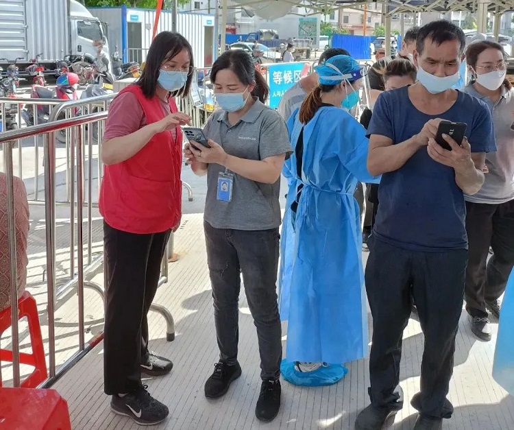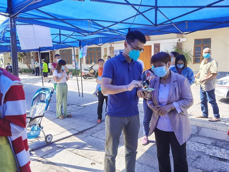 在各个核酸检测点现场,黄碧仪、何敏英、梁丽群等代表密切关注群众排队的秩序,一旦出现拥堵现象,马上上前进行疏导,确保群众采样队伍井井有条。同时,她们也手持小喇叭,把核酸检测政策、注意事项、出示核酸检测码等内容,向群众反复宣传,引导群众正确参与核酸检测,不出现错漏情况。对一些年龄大不懂智能手机操作的老年人,她们一对一耐心指导,保证老人顺利完成取样检测。