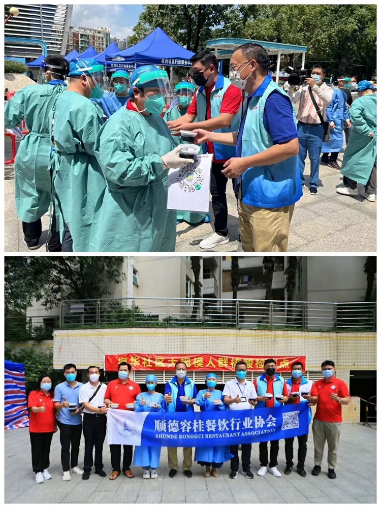 区人大代表罗兆波、叶云飞,运用好自身容桂餐饮行业协会的资源,带上龟苓膏、绿豆沙等消暑甜品分赴多个采样点,为现场工作人员消暑降温。区人大代表梁凯红自发到上佳市社区为工作人员送上清凉饮料,传达慰问与关爱。