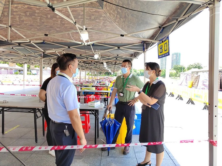 为确保各核酸采样点顺利有序进行作业,容桂街道人大工委主任欧阳雪乔前往各个采样点进行督导。欧阳雪乔现场与各采样点负责人深入交流,指导各采样点合理布置,并叮嘱相关负责人要做好现场防暑降温工作,既要保障采样工作顺利完成,又要保障好群众和现场工作人员的健康安全。