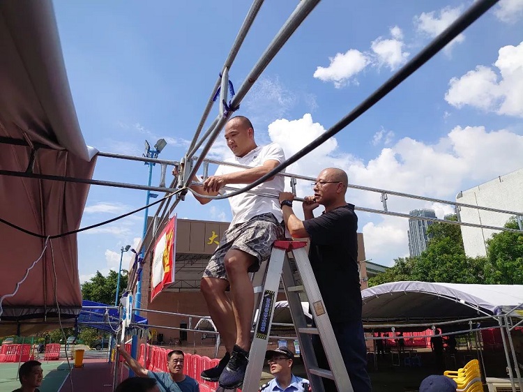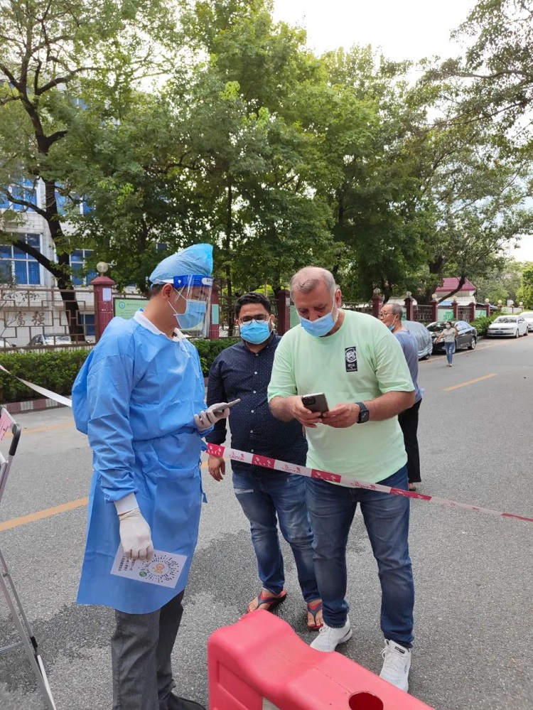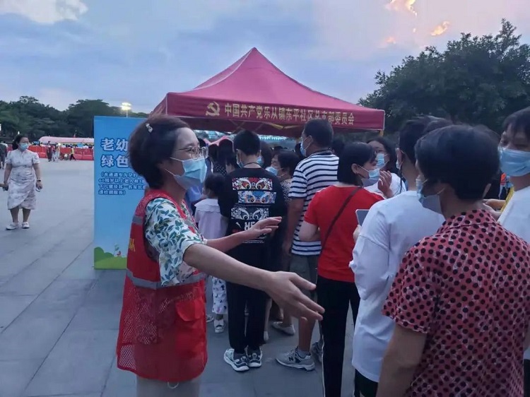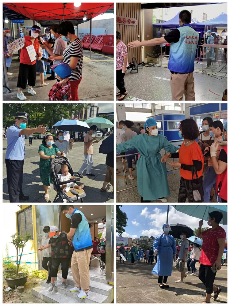 炎热高温的工作环境,庞大的检测任务量,并没有浇灭他们的工作热情。身披红色志愿者马甲或防护服的代表们顶着高温,有些主动请缨参与搭建帐篷,运送必要医疗物资,协助做好后勤保障工作;有些手举二维码指示牌,指引市民群众提前扫码有序入场;有些则耐心帮助群众解答系统录入操作问题等。在多方的共同努力下,在市民群众的配合下,检测现场秩序井然,有效保障了采样工作高效、有序、快速完成。