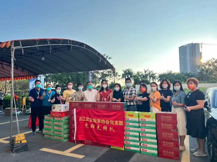 龙江镇人大代表、镇女企业家协会会长李丽姬,牵头带领女企业家协会发出倡议,积极组织动员社会力量,参与、支持疫情防控工作,向参与左滩村、西江府疫情防控一线工作人员送上王老吉、菊花茶、八宝粥和水果合共120箱。