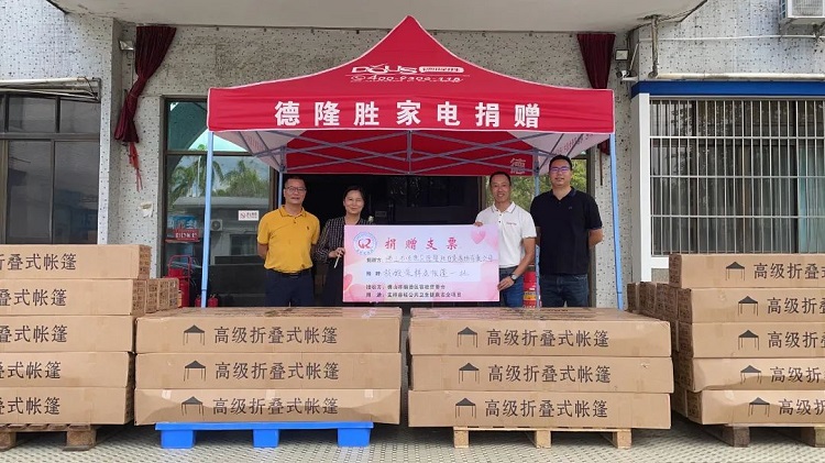 7月21日上午,顺德区人大代表、德隆胜百货商场有限公司总经理何文彬,通过容桂慈善会向容桂街道新冠肺炎疫情防控指挥部捐赠了100个核酸采样点帐篷,在雨水及炎热天气的情况下,为户外采样的医护人员改善工作环境。