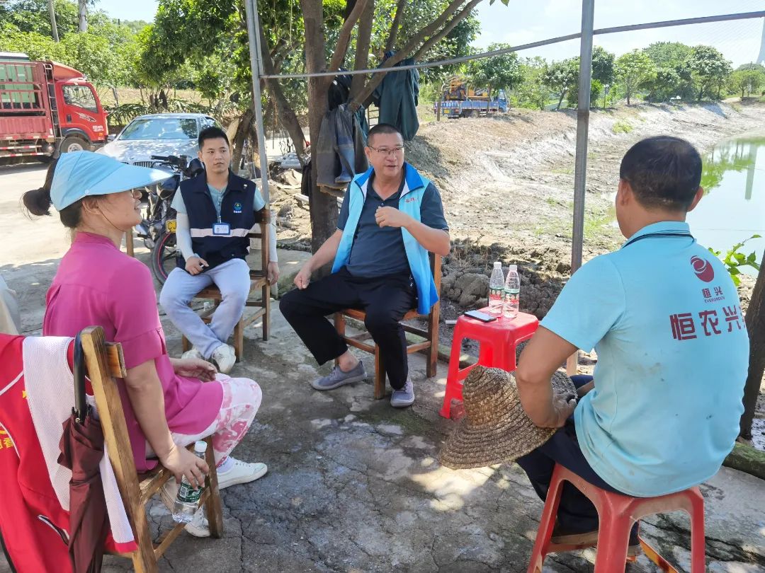 7月22日上午,顺德区人大代表莫占江联同穗香村两委班子成员、网格员、党群志愿者一起到穗香围堤外走访基耕鱼塘开展调研,了解鱼塘养殖农户对农技培训的实际需求。