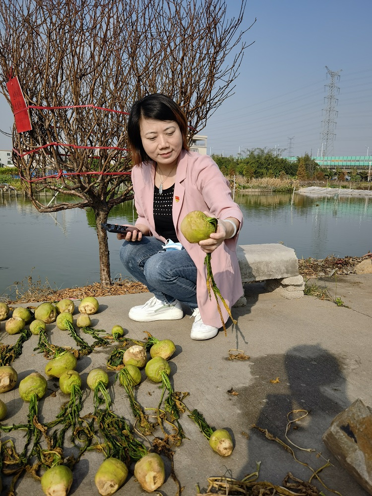 龙涌口村长期是容桂发展的“洼地”,如何在乡村振兴的洪流中占据后发优势,实现跨越式发展,是摆在当时刚到龙涌口村工作的郑丹妍面前的一道难题。“龙涌口村有什么?”带着这个问题,郑丹妍和村干部广泛开展调研,一起深入村民家中,来到田间地头,了解到龙涌口村拥有丰富的农耕文化底蕴,村内有桃花、咸生菜、淡口大头菜等特色农产品,百年延绵的种植制作历史是其鲜明注脚。在此基础上,郑丹妍带领村干部一起制作了《龙涌口村特色文化品牌中长期规划》,决心通过强党建、翘资源、争扶持、促合作,打造“1支队伍+2个品牌+1个形象识别系统”,建设“三产共融、三栖生活”的特色乡村。