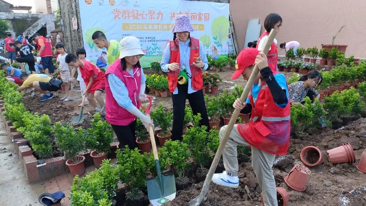伦教街道启动治水大会战“清岸行动”以来,黄碧仪积极参与整治河岸违法用地、乱搭乱建等活动,拓宽滨河空间。为充分利用好整治出来的荒地,在她的提议下,新塘村大会涌河岸“共建美丽家园”亲子美岸活动如期举行,以小手拉大手的形式,邻里们一起栽种花卉和树木,让杂草丛生的荒地摇身一变,成为村落河岸边的一个打卡点。同时,她还组织志愿者对大会桥护栏进行涂漆翻新,为新塘村大会涌河岸带来崭新的色彩。