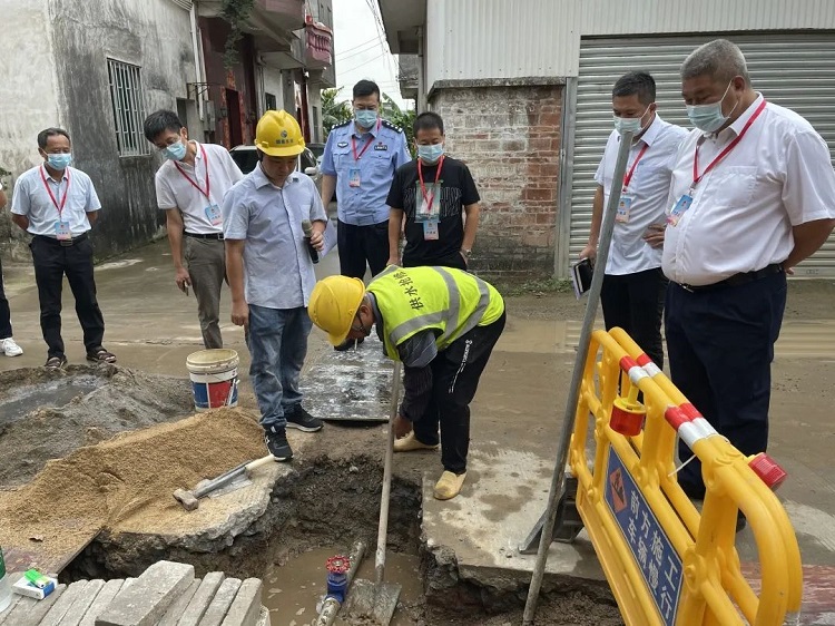 调研组一行首先前往南华村实地视察“实施供水管道提升改造工程”民生实事项目,现场听取相关承建单位关于改造计划、施工措施的情况汇报,并现场对施工环境提出意见建议。据了解,该村供水管网建于90年代初期,部分供水管网已使用30多年,出现老化和水黄水浊情况。针对上述情况,顺控杏坛分公司已于2021年对主管升级改造,但仍存在水压偏低的情况。本次水管升级改造后将会满足南华村约1300户用户,约4900人用水需要,计划于今年10月前能顺利完工并通水。