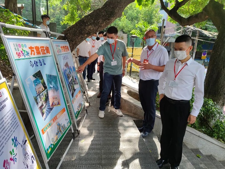 随后,人大代表来到容新社区老旧小区。容新社区以居住为主,绿化环境良好,生活配套齐全,交通便利,是容桂街道的宜居社区之一。由于2000年前建成的老旧小区,大部分为单体旧楼,欠缺公共空间及设施的配套,结合居民诉求,容桂街道拟对容新社区进行整片联动改造,以老旧小区改造推进城市旧区整体品质的提升。代表们对社区老旧小区环境进行了实地考察,边互相讨论研究边与现场居民群众进行交流,了解群众的想法和期盼,最后还对凤岭公园南门旁单体楼的大型壁画设计方案进行了投票。