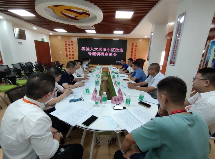 最后,人大代表召开专题调研座谈会。街道城建和水利办公室副主任陈佩琛向人大代表汇报了容桂街道老旧小区改造工程的整体推进情况和推进计划,以及过程中遇到的问题。结合现场考察和部门汇报情况,代表们就如何进一步推进老旧小区改造、帮助政府解决问题展开了热烈的讨论,并向相关部门提出意见建议。