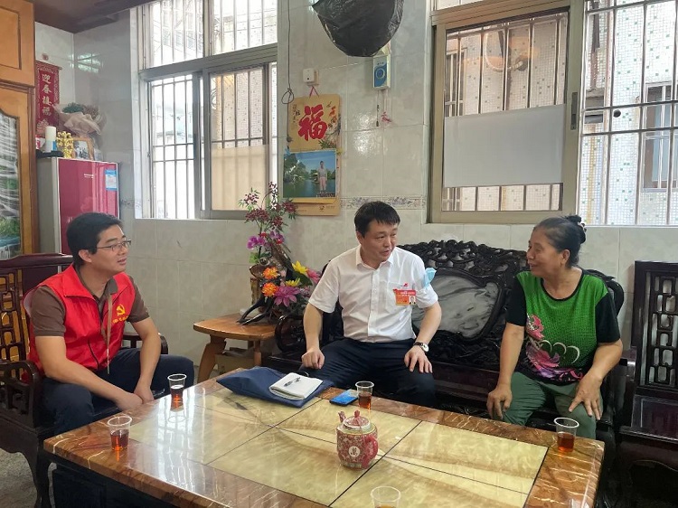 郑庆文与海尾社区党委副书记梁领朋一起深入党员、退役军人、居民代表家中走访,关切询问他们的生活状况,认真聆听并收集他们的需求和建议。