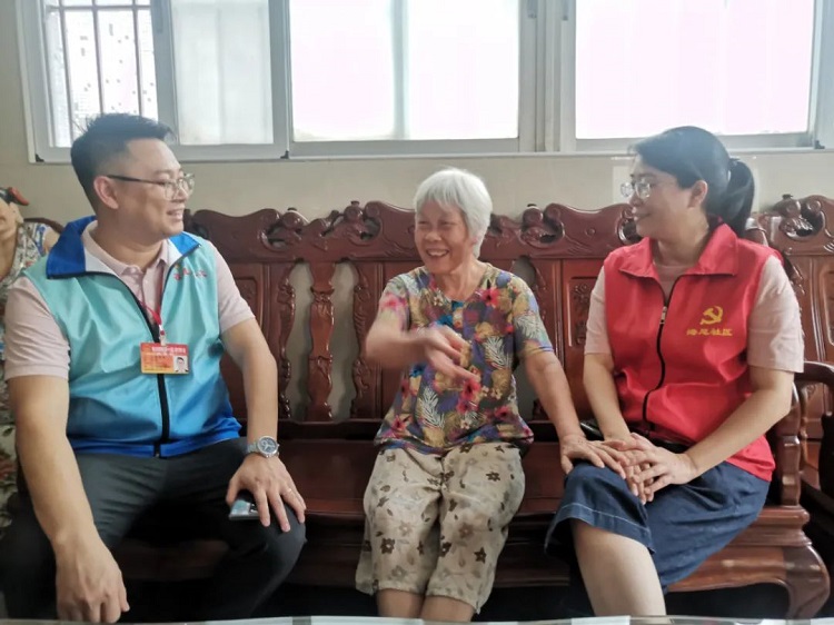 谭林胜与海尾社区党委副书记卢惠娴一起到花洲新村和格兰仕新村两个小区进行入户走访,并就老旧小区改造方案进行探讨。走访过程中,谭林胜注重倾听群众声音,紧盯“需求清单”,做好政府和群众之间的桥梁纽带,努力为群众办实事。