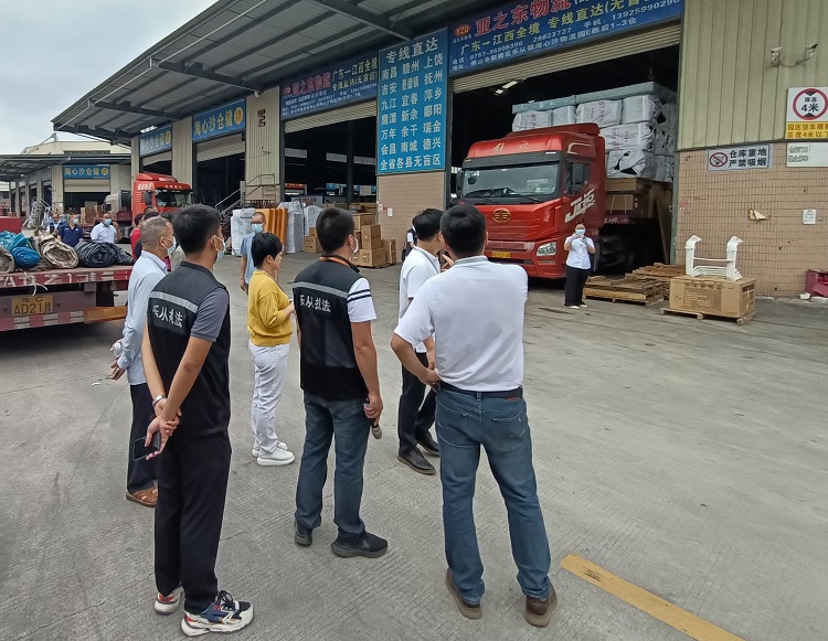 随后,调研组来到了海心沙物流配送中心开展物流行业安全生产执法检查。在现场负责人的引领下,人大代表和执法人员进入配送中心,认真检查了园内交通调度情况,向责任方详细了解了工人安全生产操作、消防管理、现场防疫等多个方面是否规范。代表们把发现的问题直接反馈现场执法部门,由执法部门勒令物流园限期整改。