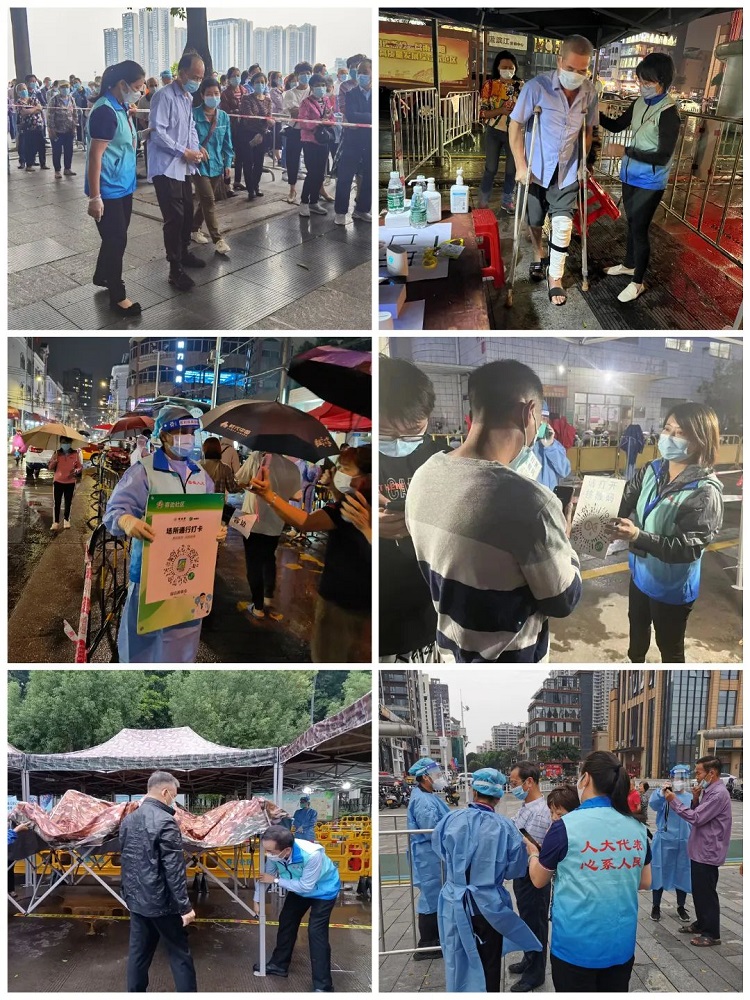 在各核酸采样点,尽管天气多变,但人大代表们仍毫不退缩,协助医护人员及社区工作人员有序开展采样工作。风雨中,代表们牢记使命,依然坚守岗位,严格落实疫情防控工作要求,一步步引导群众扫码、测温,提醒群众保持安全距离,耐心给群众解答各种疑问,充分发挥代表来自群众、扎根群众的优势,展现了危难时刻人大代表的担当和作为。