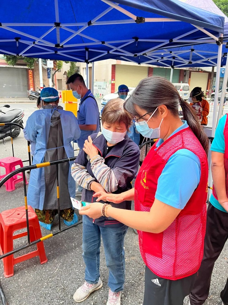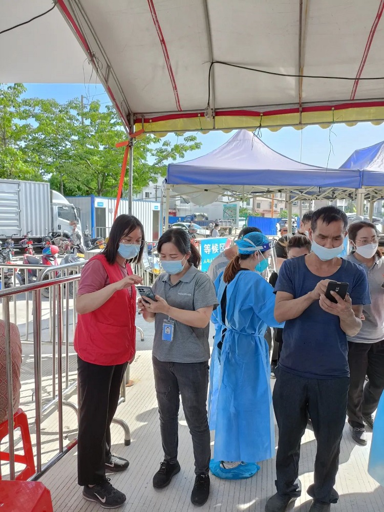 区人大代表龚晓云除了亲身参与支援工作外,还利用自身工作资源,派出企业员工组成志愿者队伍,分批前往社区检测点参与支援工作,有效缓解社区人手不足的压力,同时带领企业践行社会责任,提升使命感和责任感。