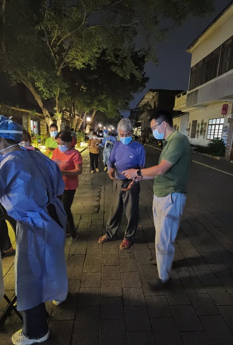 容桂街道人大工委主任欧阳雪乔、副主任杨伟东马不停蹄,前往多个核酸采样点进行督导,对现场发现的问题及时指出并要求马上整改,进一步优化采样流程,确保核酸采样工作顺利有序进行。