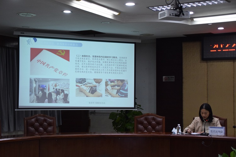 会上,市生态环境局顺德分局龙江监督管理所、龙江镇宣传文体旅游办公室、龙江镇应急管理办公室三个单位负责人分别作“谁执法谁普法”责任制述职报告,报告主要从普法责任机制建设、系统内部学法、社会普法宣传等多个方面介绍各自部门的履职情况。