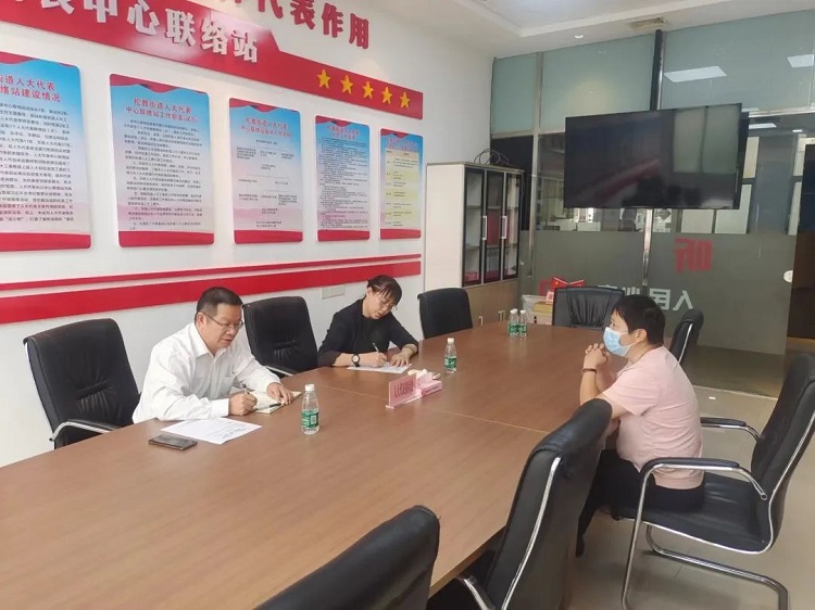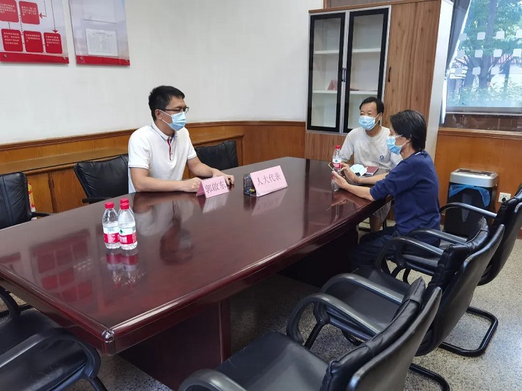 在三洲联络站,区人大代表郭啟东与选民代表进行座谈交流,对于群众咨询文明西路678街污水管工程赔偿进展,向他们通报了情况,并联系相关部门要求限期将办理情况回复群众。