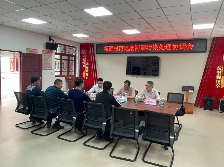 调研组先后来到范地寨涌和金怡康洗碗厂,现场了解河涌水质和洗碗厂废水处理排放等情况,随后来到裕源村委会召开范地寨河涌污染处理协调工作会议。