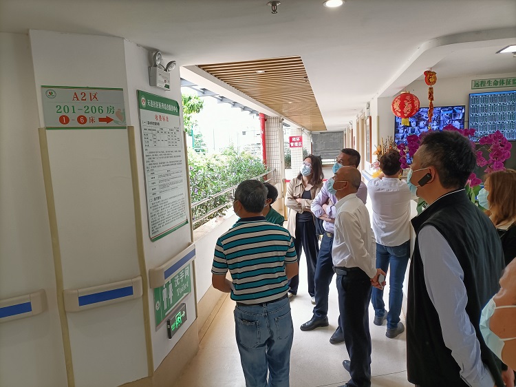 调研组首先来到均安镇天连社区医养结合服务中心进行考察,除了了解均安镇医养结合项目建设情况外,还现场参观中心的护士站、康复治疗室、娱乐区、阅览区、适老化设施等功能区,听取现场负责人介绍中心的基础设施建设、医护人员结构、运行机制建设等情况。通过听取介绍、现场体验的方式,人大代表们详细了解了均安镇在医养结合服务工作方面的探索、实践和阶段性成果。