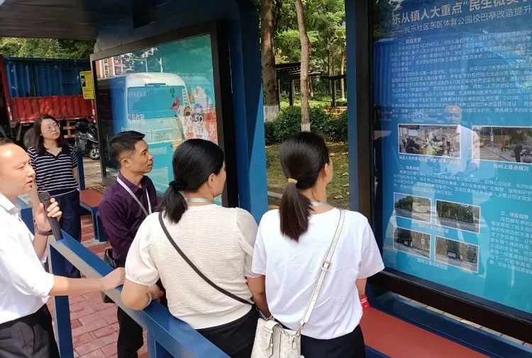 随后,项目管理组还实地视察了兴乐社区,对其2022年民生微实事获批资金支持项目——“新建东区体育公园校巴候车亭”进行“回头看”。校巴亭的落成,既为候车学生提供了遮阳挡雨的地方,安全护栏的设置,也大大提升了候车区域的安全系数,更好保障了学生的安全。管理组成员对该项目均表示了一致认可和满意。