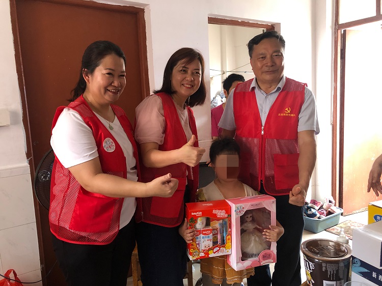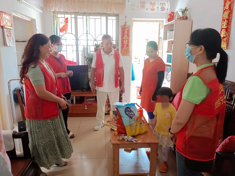 活动开始前,区人大代表、大良总商会会长龙仲滔,区人大代表、大良总商会党委副书记张广辉,近良社区党委副书记黄秀珊,以及社区工作人员分别带队到小区4户困难儿童家庭进行走访慰问。