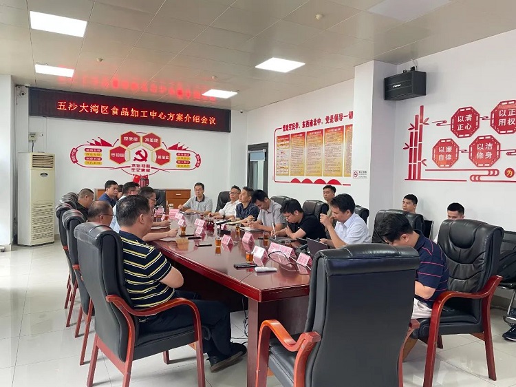 会上,广东顺控产业投资有限公司(以下简称“广东顺控产投公司”)项目介绍人从项目背景、调研考察、总平设计等五方面向与会人员进行介绍,拟在五沙工业园区内打造一个集猪牛羊屠宰加工、冷库仓储(战略储备)、冷链物流、食品深加工、科普教育等功能于一体的全链条、可持续、高标准生态食品产业园。