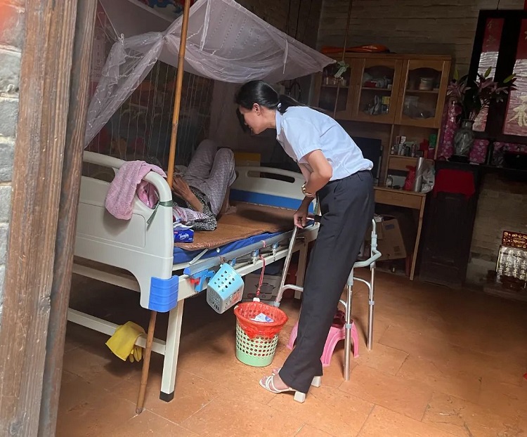 镇人大代表伍淑红在走访独居老者,慰问老人之余,也了解房屋是否渗漏,劝导老人如发现水浸或者漏水问题,可前往村委会临时庇护站暂住。