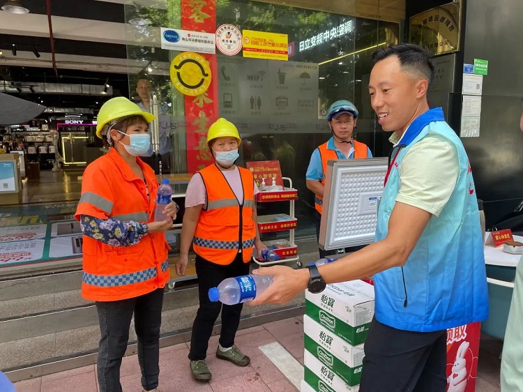 7月20日上午,区人大代表、佛山市顺德区德隆胜百货商场有限公司总经理何文彬,联同容山社区党委开展“政企联动送清凉 关爱户外劳动者”活动。