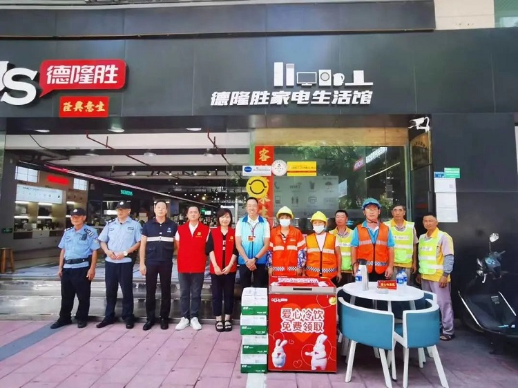 当天上午,德隆胜百货商场在商场门前设置冰柜,放置清凉饮品供户外劳动者免费领取。同时,容山社区党委也送来清凉饮料。