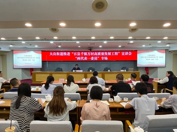 大良“百千万工程”怎么干?目标怎么实现?会上,通过播放“百千万工程”宣传片解读了这项重大战略的意义,强调“百千万工程”既是市委、区委赋予大良沉甸甸的政治责任,也是大良系统解决区域发展不平衡问题,绘就发展新图景的重大机遇。随后,分别由大良街道“百千万工程”指挥部相关成员单位,汇报了工作情况和下一步工作计划。