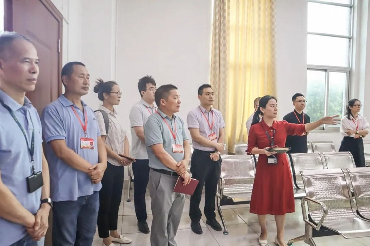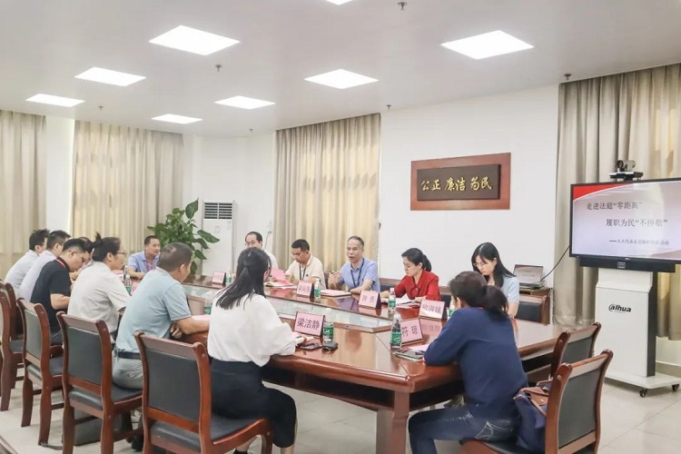 在陈村法庭庭长梁毅强的带领和法官钟贵的讲解下,陈村总商会人大代表联络站一行人首先参观了陈村法庭数字化审判庭、调解室等区域,近距离感受新时代法院信息化建设,对法院的文化建设、诉前调解、审判流程、司法公开及各项便民利民举措落实情况有了更深入的了解。