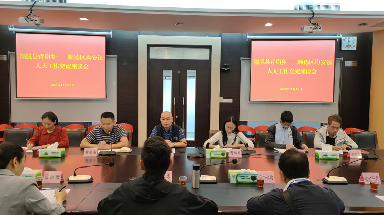 在工作座谈会上,背崩乡人大代表团围绕乡镇人大代表履职管理、重点工作督办、人大联络站建设、乡村振兴等各项工作,与均安镇人大主席冯炳全、副主席贾豪杰及相关人大代表进行深入交流,互相借鉴先进工作经验。