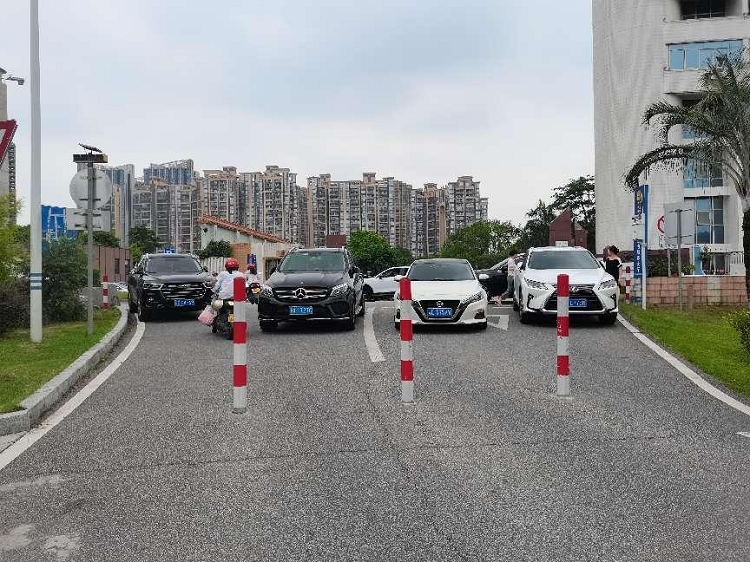 前来办事的车主将车停在南涌大桥桥底隧道出入口,市民出行不便