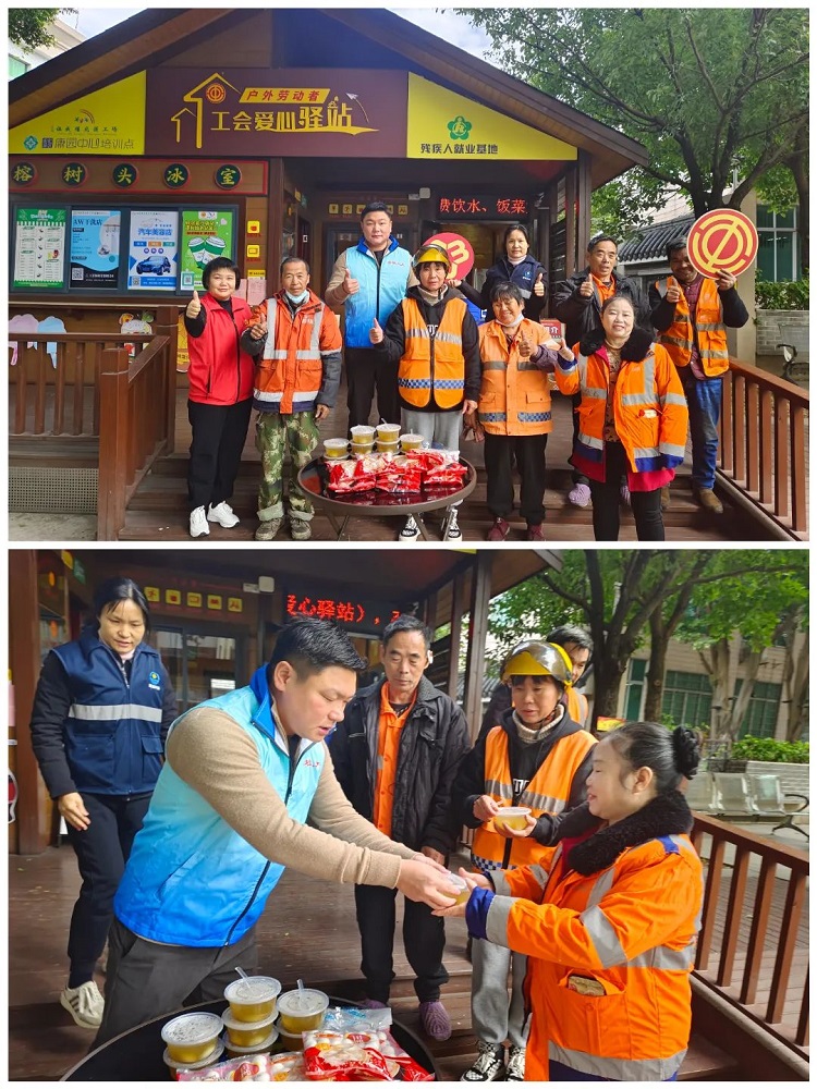 12月22日上午,籍着中国民间传统节日冬至来临之际,细滘社区党委联合顺德区人大代表、顺德区一壶餐饮管理有限公司负责人叶云飞到容桂工会户外劳动者细滘爱心驿站开展“代表送温暖,点滴暖民心”活动,为环卫工人送去节日汤圆和暖心慰问,让他们感受关怀与温暖。