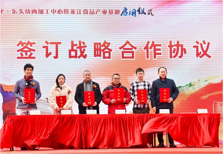 12月22日,东头烧肉加工中心暨龙江食品产业基地正式启用。领导嘉宾、人大代表共同上台为“非遗文化·龙江东头烧肉加工中心”、“龙江东头烧肉菜式研究中心”、“龙江东头烧肉文化传承中心”、“龙江食品产业基地”揭牌。
