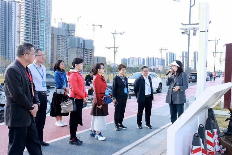 视察组来到“百里芳华”伦教段二期公园,该公园设有音乐喷泉、大草坪、七彩玻璃桥……景观优美,是市民喜欢的示范滨水休闲廊道。