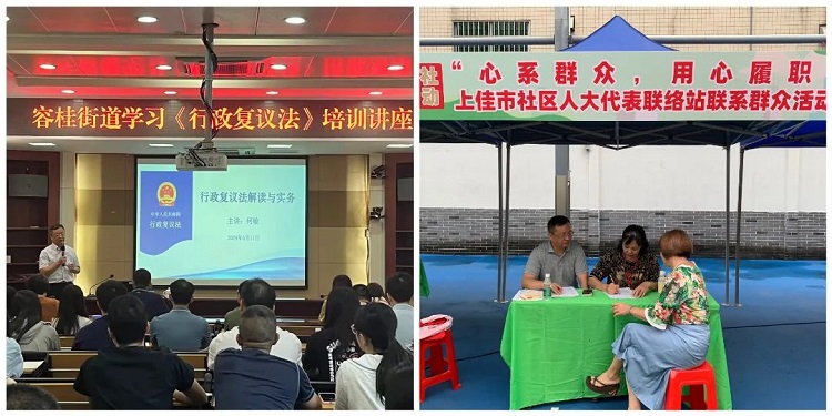 5月11日,市人大代表何敏为街道相关职能部门解读新修订的《中华人民共和国行政复议法》。何敏在日常也积极参与基层治理工作,与区人大代表侯楚琴一起不定期参与“摆摊”接待群众活动,并利用自身资源开展送法到社区活动,为广大群众宣传普及法律知识。