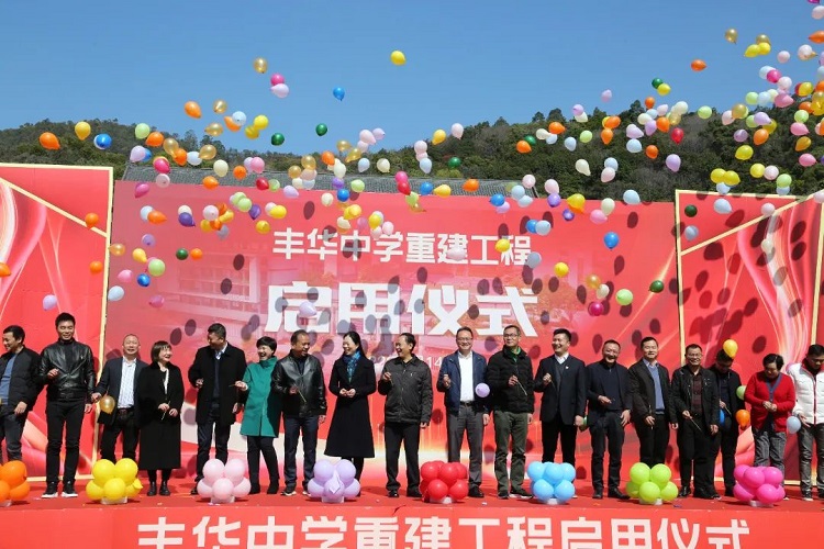 丰华中学重建工程于2020年8月13日动工,拆除旧建筑面积6846.34平方米, 新建教学楼3栋、综合楼2栋、文体楼1栋、宿舍楼1栋,以及运动场、地下室,总投资约1.25亿元,新增建筑面积9919平方米、学位550个、宿位1500个。新学校班额最大可达36个教学班、满足1800名学生全住宿需求。