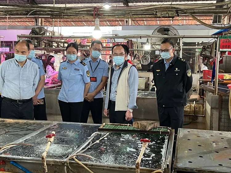 调研组先后到容桂街道幸福综合市场、小黄圃市场,实地查看市场的环境卫生、疫情防控、设施配套、摊位规范、服务管理、快速检测等情况,详细询问农贸市场升级改造的措施和进度。