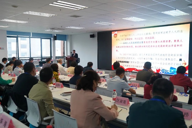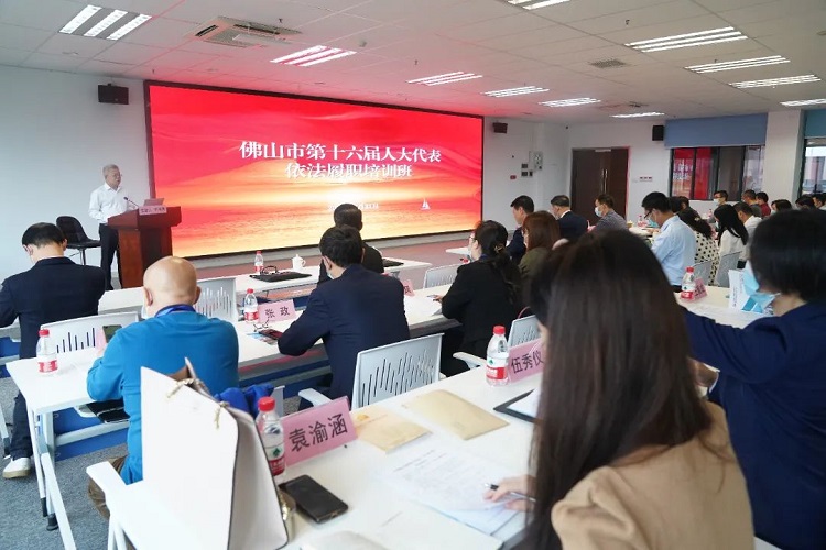 在培训班上,广东省人大常委会选联工委代表联络处二级调研员李跃荣受邀作“高质量履职,践行全过程人民民主”专题辅导。中共佛山市委党校哲学教研部主任姚明强解读《党的十九届六中全会精神》。佛山市第十五届人大代表朱新民分享了履职经验。