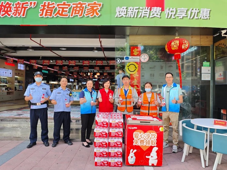 今年,该商场延续这一举措,继续在商场门前设置爱心冷柜。近日,容山社区党委联同市人大代表叶汶杰、区人大代表龚晓云、李洁瑜一起开展“防暑降温夏日送清凉”活动,捐赠了一批清凉饮料到商场的爱心冷饮领取点,并由区人大代表、顺德区德隆胜百货商场有限公司总经理何文彬接收。