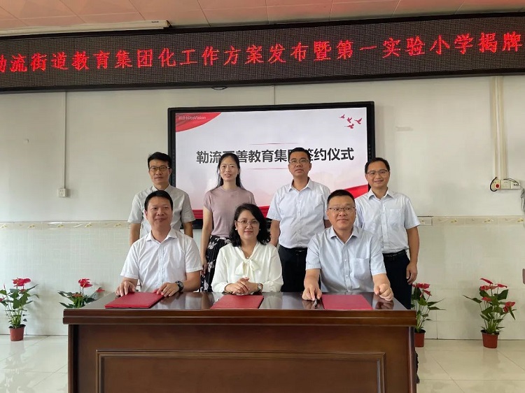 会上,勒流街道教育集团共建签约仪式举行。以勒流第一实验小学为核心校的“至善教育集团”各学校进行签约,其成员校包括西华小学、众涌小学。