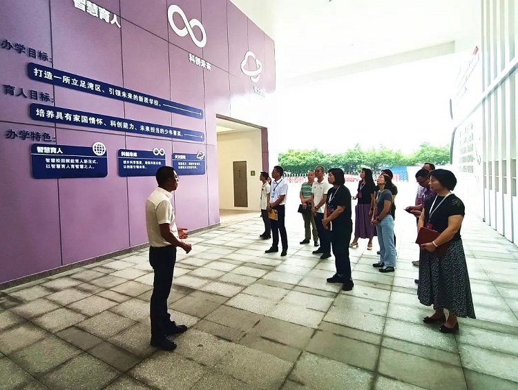 监督组先后参观了华师附小的办学目标、教师风采、学生活动展示墙,走访了各年级的学生课室、学科功能活动室,以及学生饭堂、午休宿舍等校内区域。据介绍,华师附小位于佛山市顺德区乐从镇万福路以南、银桂路以北、百顺路以西的教育用地,由顺德区、乐从镇两级政府投资5亿多元兴建,与华南师范大学合作办学,是顺德区“最美校园行动计划”的第一所新建学校。