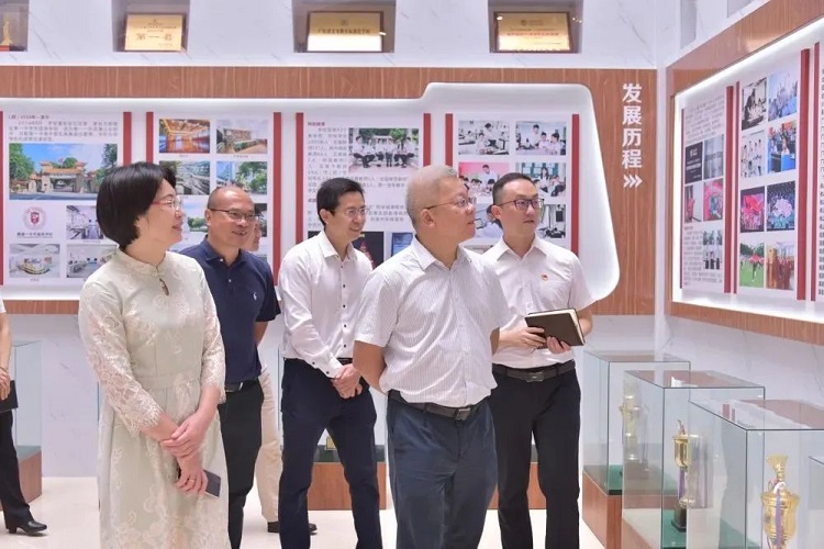 在顺德区第一中学外国语学校,慰问组参观了学校图书馆,听取校长曾祥明介绍学校的发展规划和教学工作开展情况。