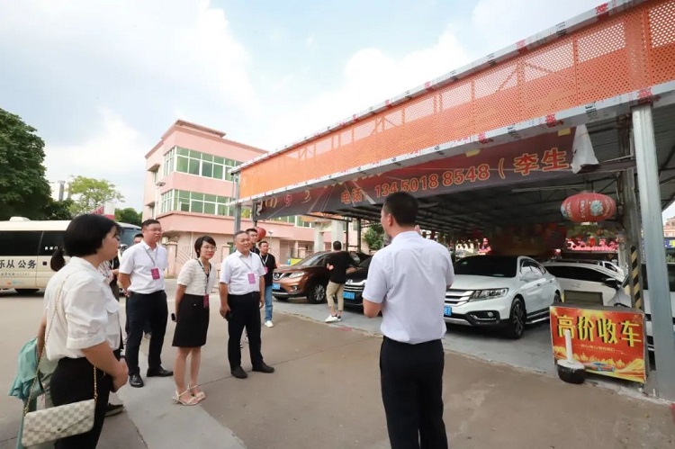 会议结束后,与会代表一行前往镇内腾冲社区,对社区“二手车交易市场提升”和“美丽街巷”两个项目开展实地走访视察。腾冲社区居委会负责人介绍,通过对腾冲二手车交易市场各商铺外立面进行重新设计、更新安装统一风格装饰板、金属字、箱式招牌等,改善和提升佛山大道周边市容市貌整体形象,进而打造融合地域文化的汽车文化交易圣地,为街巷注入互动性和时尚性的活力体验。