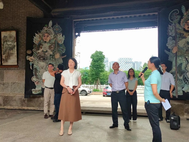 随后,调研组一行前往了路州村黎氏大宗祠,了解华侨文化传承情况。据悉,路州村于2014年4月率先成立了侨务工作站,秉承“党建带侨建,侨建促党建”的理念,从侨情收集、为侨服务、侨房保护、文化营造等方面推进侨务工作,增进华侨华人、港澳台同胞与路州村的联系。为了更好地弘扬华侨文化,路州村还在黎氏大宗祠内打造了华侨博物馆。