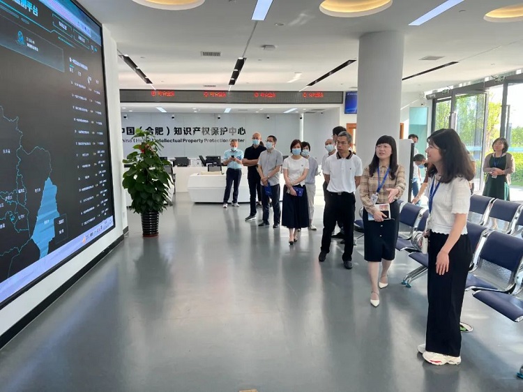 最后,考察组来到位于包河区内的中国(合肥)知识产权保护中心。该中心负责人介绍,中心是合肥市市场监督管理局(合肥市知识产权局)下属的公益一类事业单位,于2021年12月20日通过国家知识产权局实地验收并正式运行,是安徽省首家获批建设、首家投入运行的国家级知识产权保护中心。主要职责是面向合肥市新一代信息技术产业和高端装备制造产业,提供集快速审查、快速确权、快速维权为一体的知识产权“一站式”综合服务。该中心的硬件建设、制度完善等工作经验对提升顺德区公共专利服务质效有着重要参考意义。