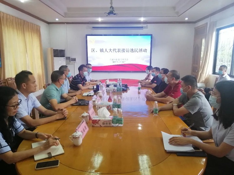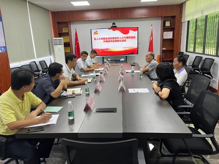 7月20日,区人大常委会法工委主任饶林海到北滘镇黄龙村人大代表联络站,与部分市人大代表一起接待选民群众,倾听群众心声,回应民生诉求。北滘镇人大办主任关胄雄、黄龙村党委书记、市人大代表陈忠青参加了本次活动。