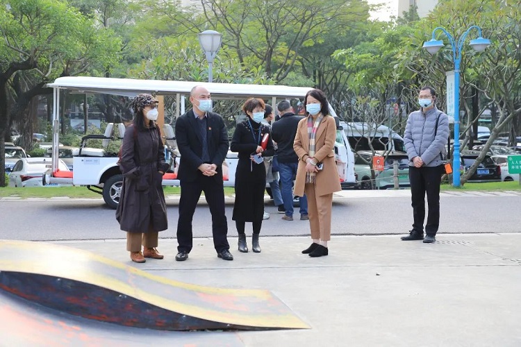 调研组一行先走访了位于佛山新城东平社区内的芒果篮球场和滑板场,认真了解社区体育公园功能、配套设施、日常运营等情况,并参观了滨河景观带。