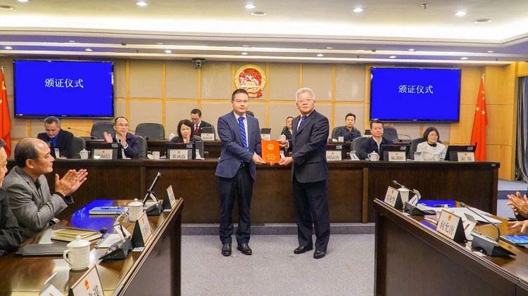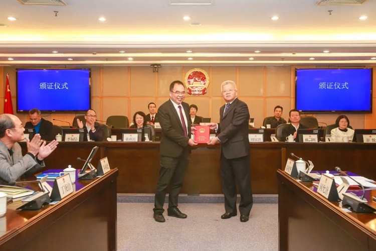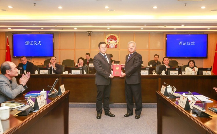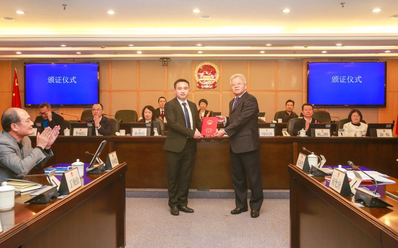 刘铭恩为新任命的国家机关工作人员颁发证书。